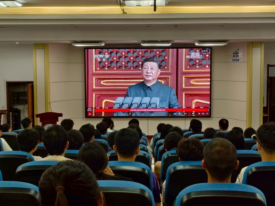 公司组织师生代表在阿朗新科报告厅集中收看纪念中国人民抗日战争暨世界反法西斯战争胜利80周年阅兵仪式直播。当三军列阵、铁甲生辉的那一刻,现场师生自发鼓掌十余次,整齐的方阵与铿锵的步伐让同学们眼中充满自豪,直观感受祖国的强大与荣光。
