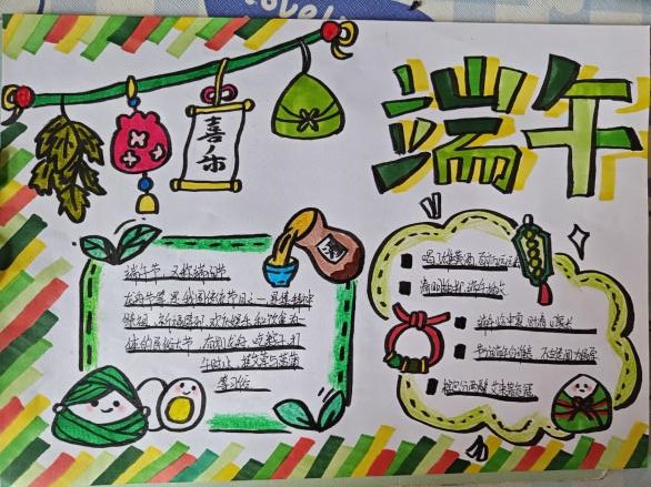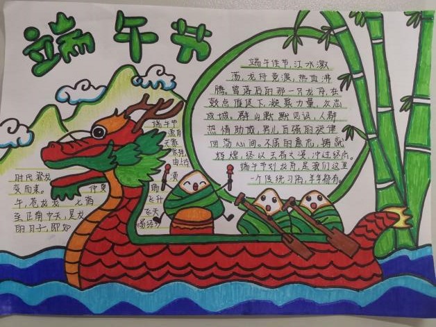 两千多年前,屈原用自己的宝贵生命谱写了一曲雄伟壮丽的爱国史诗;两千多年后的今天,同学们追溯先人故事,了解端午节的由来,学习端午节习俗,用手抄报的形式表达我们对于端午节的热爱,对于先贤的崇高敬意。