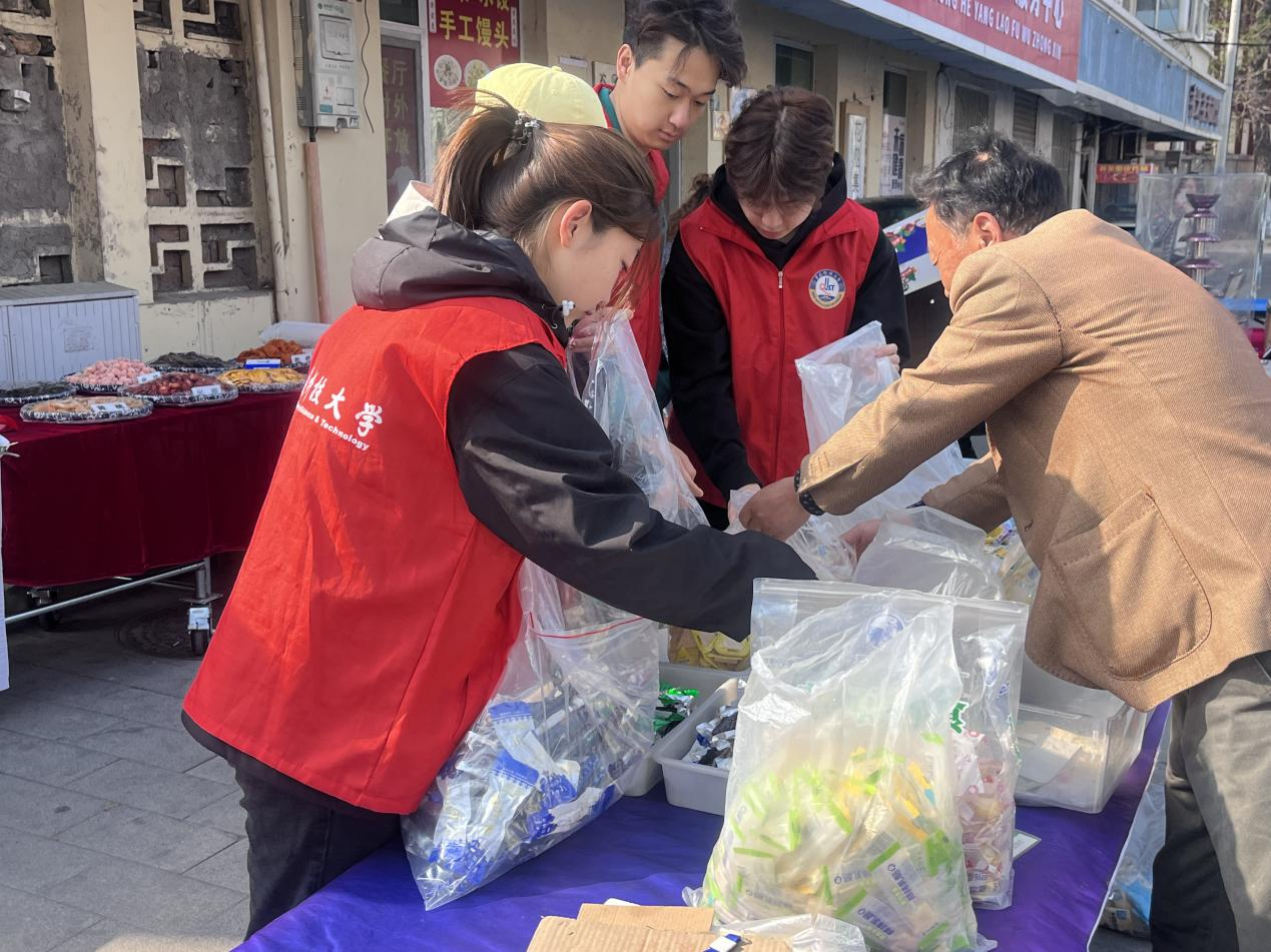 在社区副食品集市活动筹备期间,志愿者们提前抵达活动现场,积极参与前期工作。他们协助商户完成摊位布置、商品陈列等基础性工作,保障了集市交易的秩序,切实体现了服务社会的奉献精神。在志愿服务中,团队成员展现出严谨的工作态度及高效的团队协作能力,其志愿服务素养获得商户群体的一致认可,充分彰显来利国际旗舰厅青年学子的社会责任意识与积极向上的“橡尚”精神。
