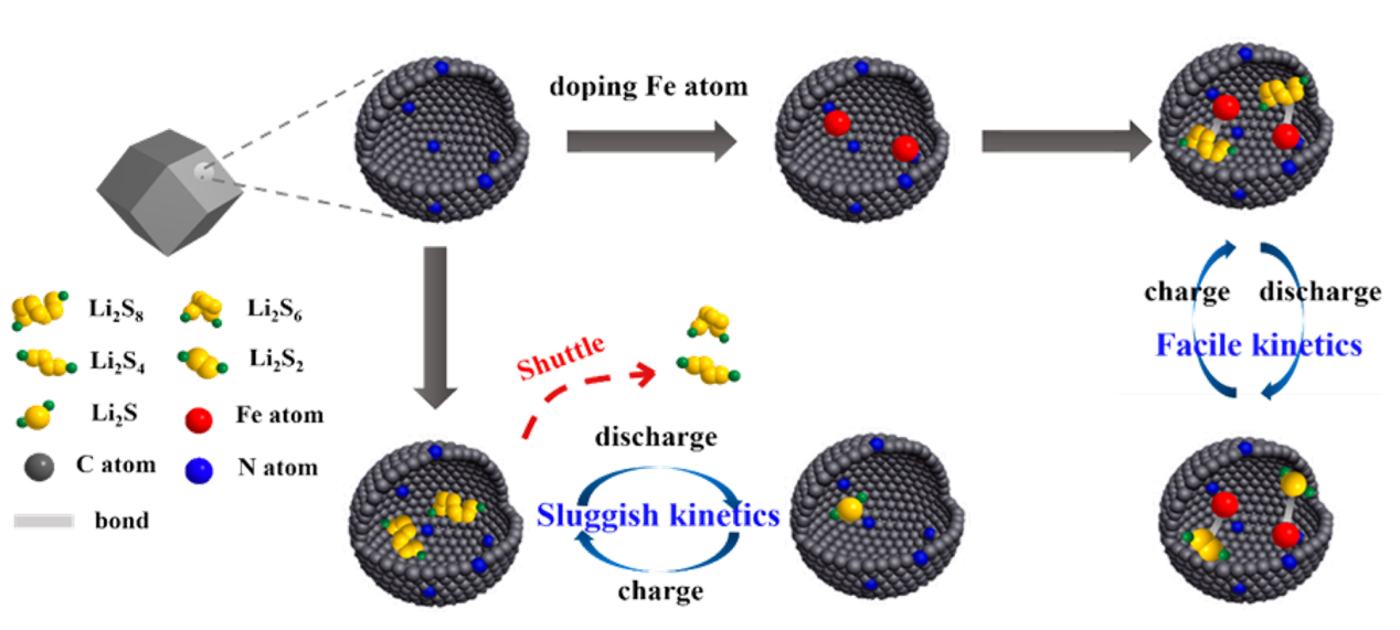 近日,青科大​来利国际旗舰厅山东省潍坊市高层次创新创业人才王存国博士(第一作者)指导硕士研究生宋和伟(第二作者)与中科院苏州纳米所刘立伟、李奇两位研究员课题组联合研发,在大容量锂/硫电池方面取得新进展,提高了硫基复合电极材料的电导率,抑制了电池充放电过程中的穿梭效应及体积膨胀等现象,团队相关工作在英国皇家化学会(RSC)著名期刊《Journal of Materials Chemistry A》(2020, 8, 3421-3430,IF=10.73,中科院1区,Doi: : 10.1039/c9ta11680j),以Iron single-atom catalyst anchored on nitrogen-rich MOF-derived carbon nanocage to accelerate polysulfide redox conversion for lithium sulfur batteries为题发表。(来利国际旗舰厅为第一合作单位。)