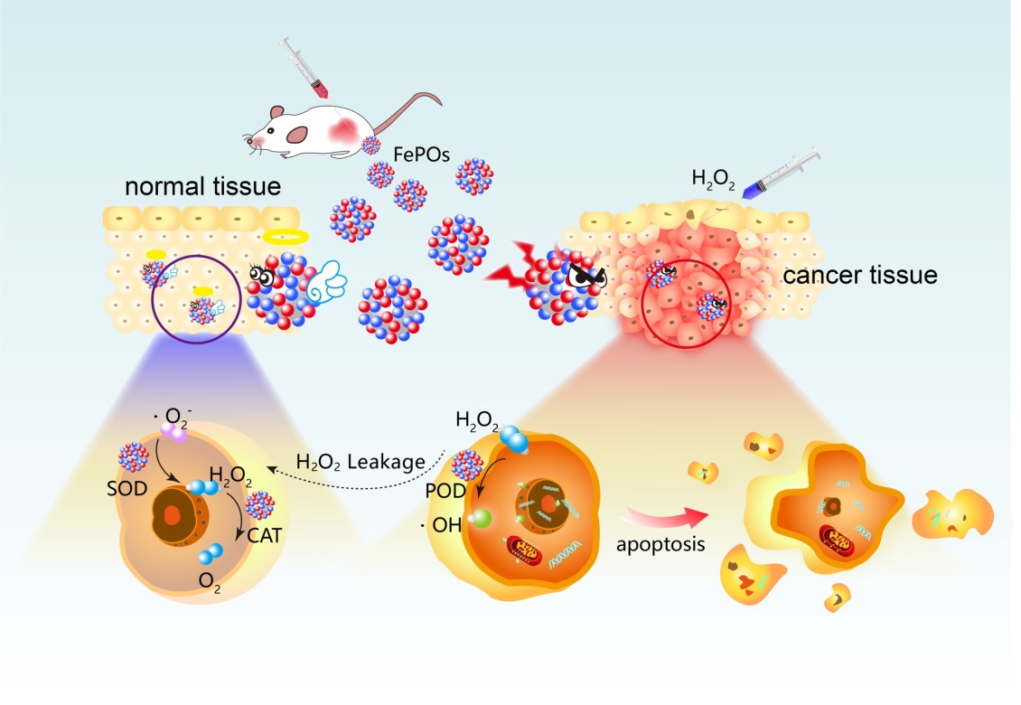 近日,公司材料公司陈克正教授、王玮教授与中国医学科公司放射医学研究所刘鉴峰研究员(材料公司特聘教授)合作,在一区期刊Chemical Engineering Journal(影响因子10.652)发表标题为“Trienzyme-like Iron Phosphates-Based (FePOs) Nanozyme for Enhanced Anti-tumor Efficiency with Minimal Side Effects”的高水平论文,硕士生王中强和博士生李国梁为该论文的共同第一作者。