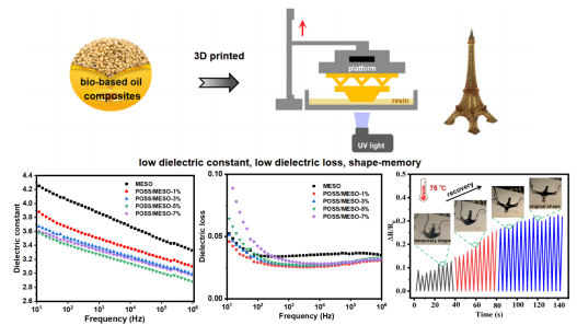 图2 POSS/MESO复合材料具有可3D打印、低介电、形状记忆、传感等多功能