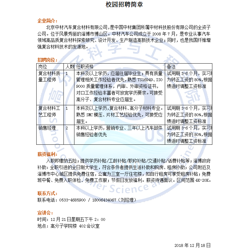 山东中材汽车复合材料材料有限公司-2019高分子招聘之四十七