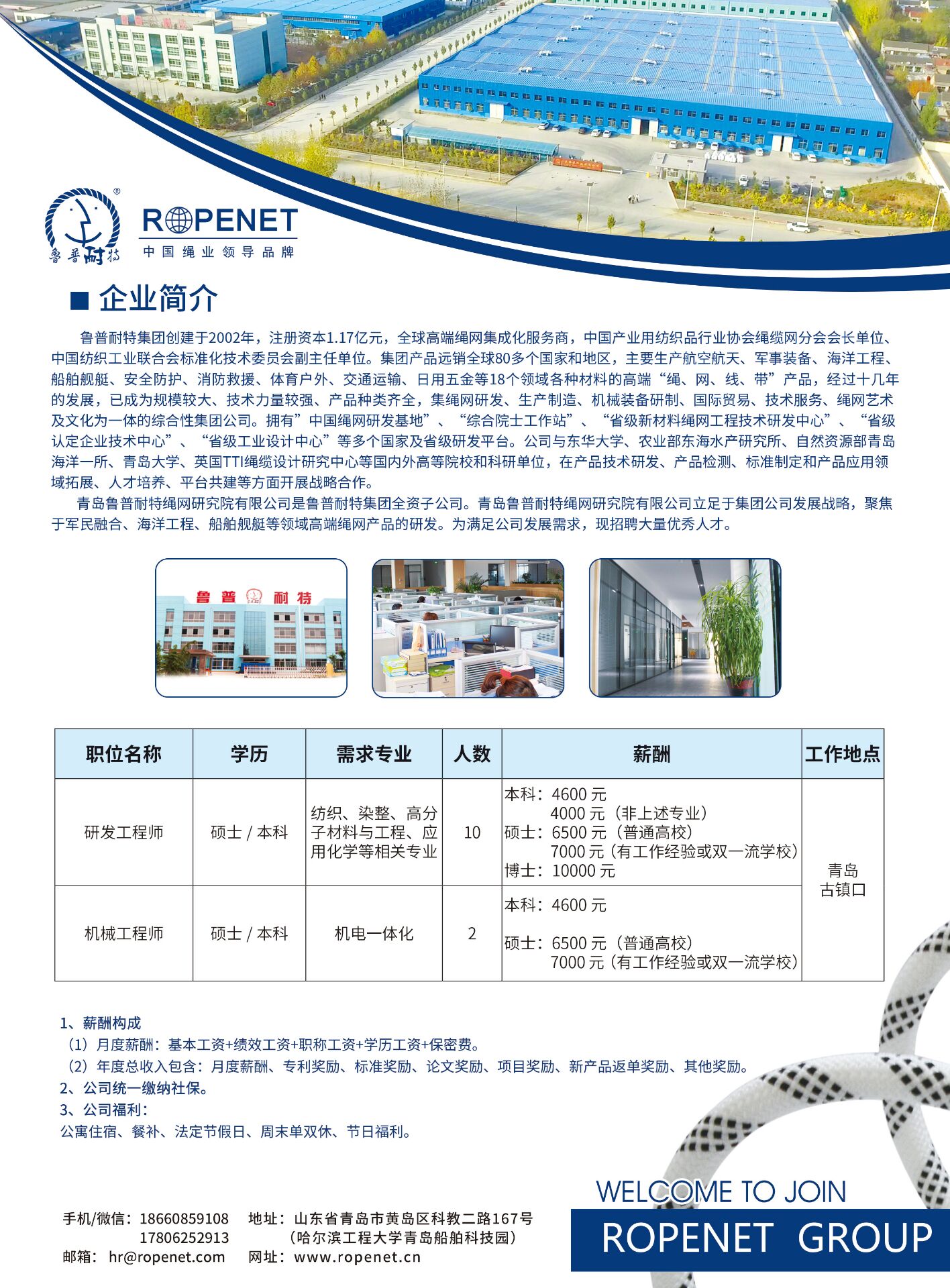 青岛鲁普耐特绳网研究院有限公司-2020高分子招聘之二百零八