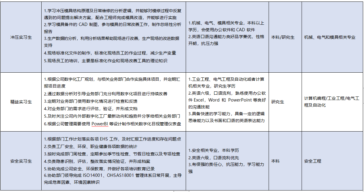 2. 实习生招聘岗位