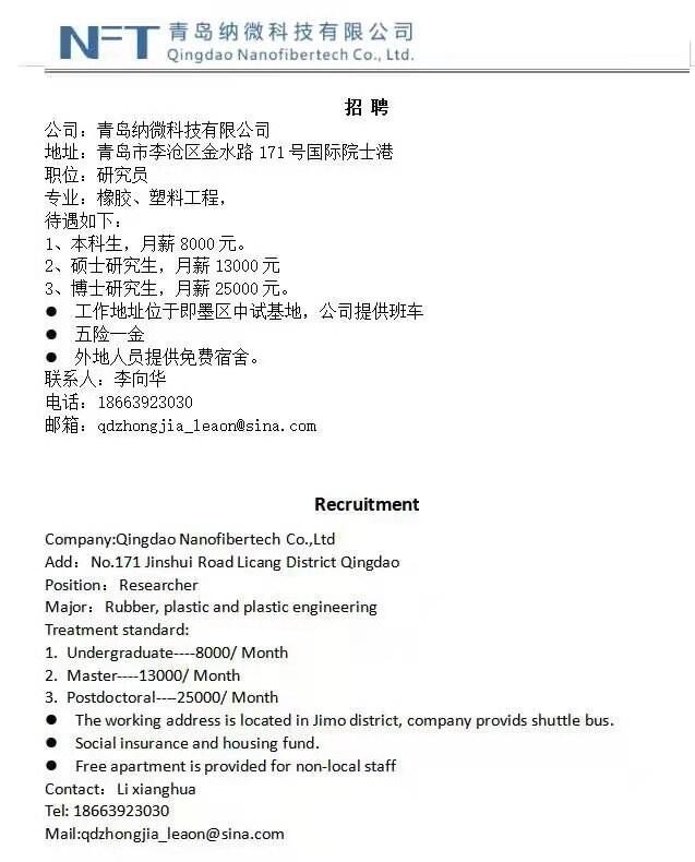 【就业信息】青岛纳微科技有限公司招聘简章