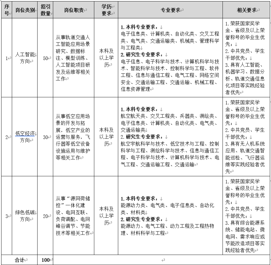 符合招聘资格条件的人员,请选择适合自身情况的岗位进行报名,按统一格式要求填写附件《应聘信息表》,发送至招聘邮箱:renli@qd-metro.com,邮件标题和应聘信息表请统一命名,如“人工智能方向-张三”,每人只限报一个岗位(多报无效)。简历投递时间统一截至2025年11月25日17:00止。