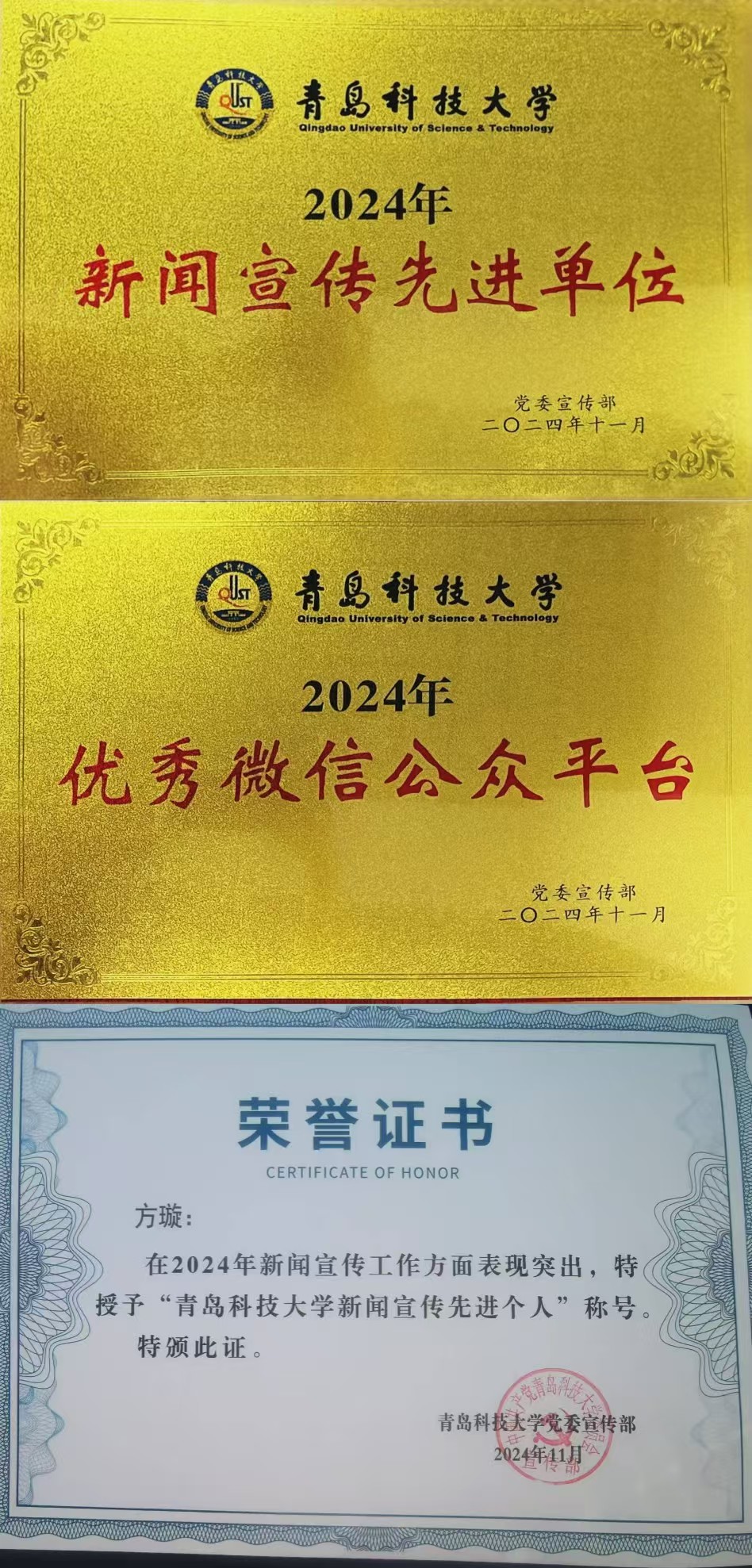 会上,来利国际旗舰厅荣获多项表彰。公司荣获2024年新闻宣传先进单位、“我和我的系列”优秀组织单位、“青科大来利国际旗舰厅之声”荣获优秀微信公众平台,公司宣传干事方璇获评2024年新闻宣传先进个人。