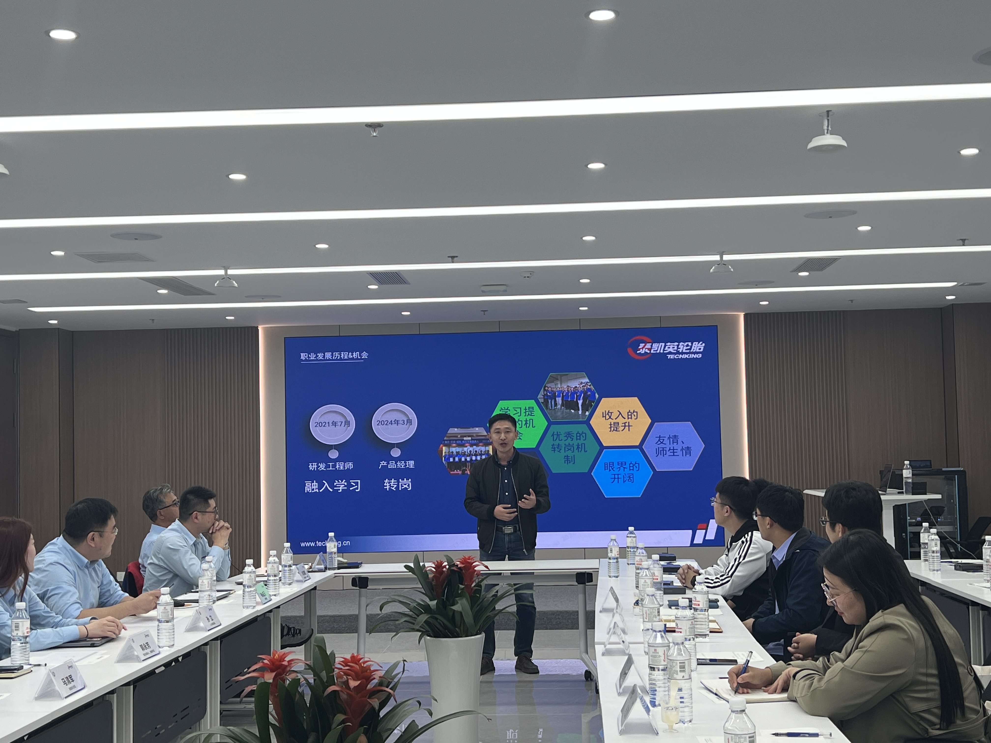 为加快推动公司卓越工程师建设,深化校企联培的充分协同,创新卓越工程师人才培养特色,11月7日下午,公司党委副书记兼副经理贾明明,副经理刘恒一行带领2025级卓越工程师同学到青岛泰凯英专用轮胎股份有限公司走访调研,泰凯英轮胎党委书记、联合创始人及董事郭永芳、办公室主任马清军和人力资源部总监孙立出席此次调研交流会。