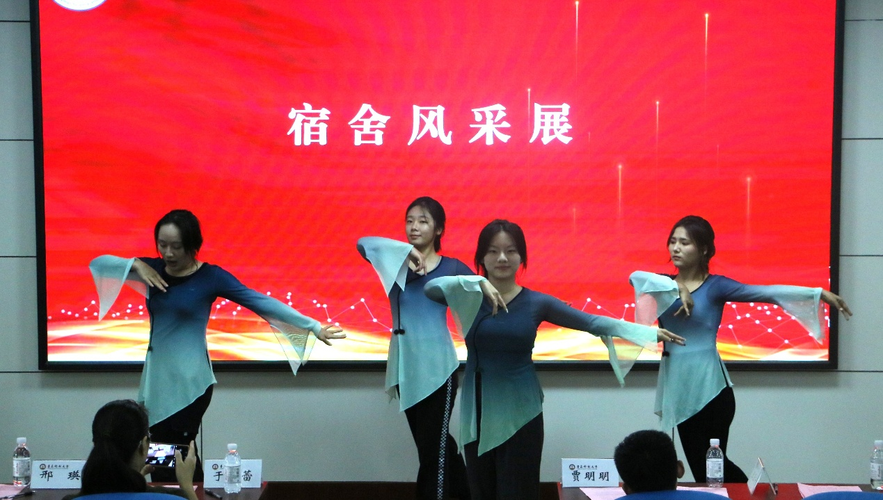宿舍风采展示环节,慧园甲北406宿舍表演了歌曲《我怀念的》;慧园甲北106宿舍为表演了舞蹈《桃云间》;26号楼612宿舍进行诗朗诵《石榴》。
