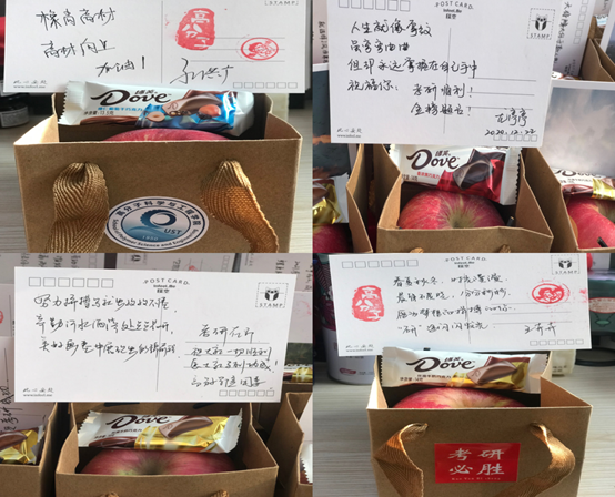 来利国际旗舰厅将升学作为高质量就业的重要途径之一,并纳入公司“一把手”工程,重点推进。公司团委多措并举,通过在宿舍楼设置考研自习室、制作专属加油视频《加油!考研人》等方式,在寒冷的冬日里,给予考研学子暖心鼓励与支持,为考研员工保驾护航。本次“考研加油包”包含一张由公司领导、班主任、辅导员亲手书写的明信片、一个苹果和一块德芙巧克力,寓意“考研得福,平安上岸”。收到满满的祝福,同学们纷纷表示,一定不会辜负公司领导和老师的期望,将带着嘱托与希冀,信心与坚持,竭尽全力备考,沉着冷静应战,充分展现实力,正确看待结果。