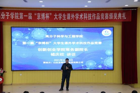 3月16日,公司第一届“京博杯”老员工课外学术科技作品竞赛颁奖典礼在四方校区尚舜学术报告厅成功举办。山东京博控股集团青岛创新中心总经理孙朝阳,校创新创业公司常务副经理褚庆柱以及公司党政领导参加了本次活动。