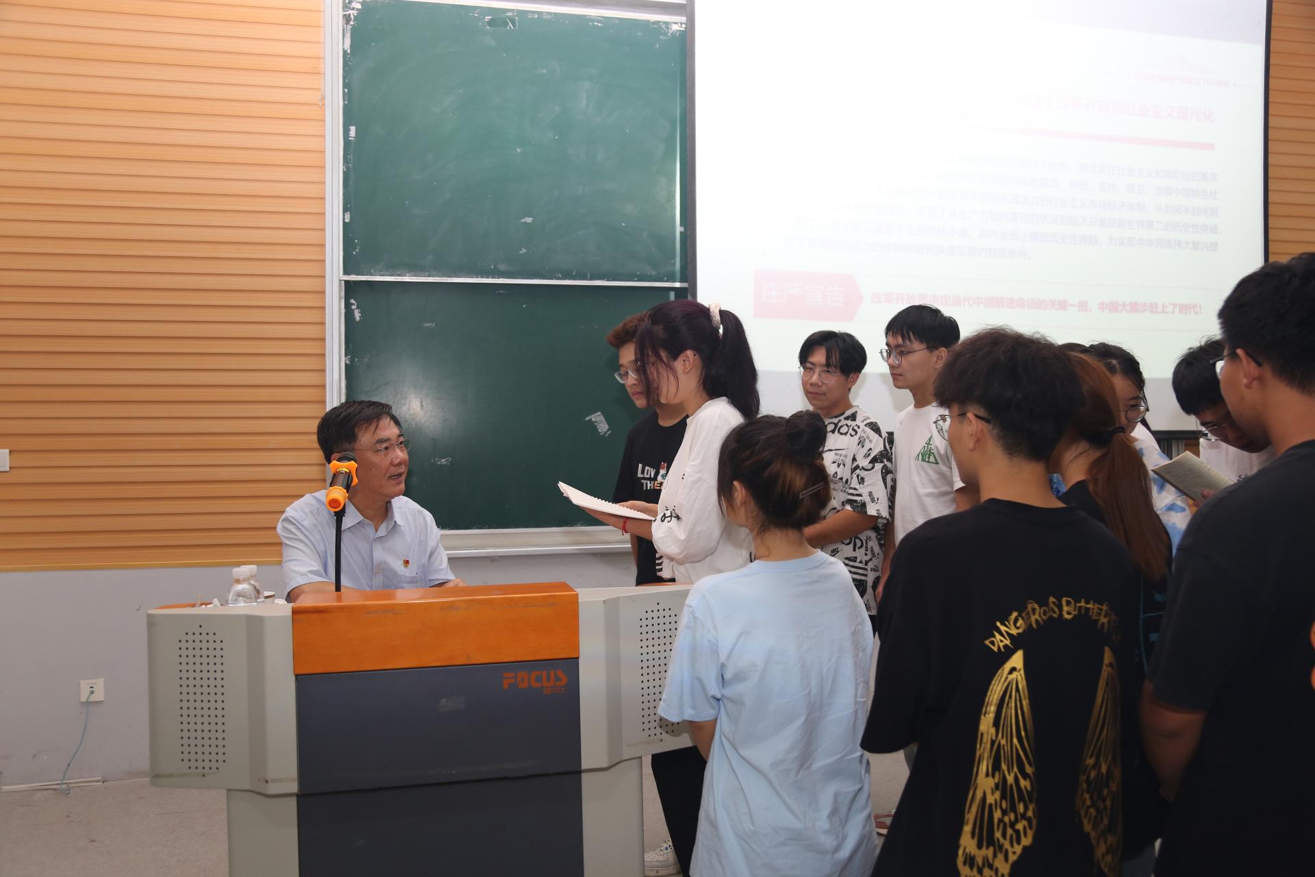课上同学们听得投入,课间同学们积极互动,课后同学们反响强烈。大家纷纷表示,不负时代,高扬理想风帆;不负韶华,锐意拼搏进取;不负期望,投身强国伟业。最后,在场同学们齐声发出铮铮誓言:请党放心,强国有我!