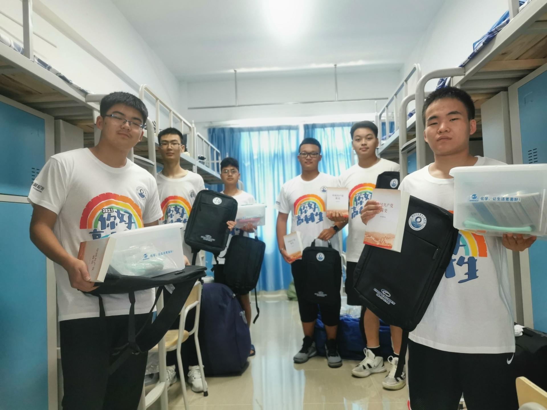 “高材生”志愿者们更是用热心、细心、温心、贴心、爱心“五心”迎接学弟学妹们的到来,从踏入校门便有“一对一”服务志愿者为新生贴上公司“高分子”logo标识,开启服务第一步,到满校园帮助新生寻找丢失的行李,再到帮助新同学在隔离宿舍安顿下,无不体现志愿者们对学弟学妹们无微不至的关怀。