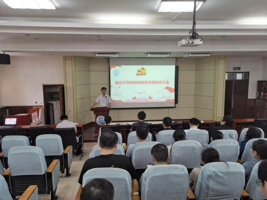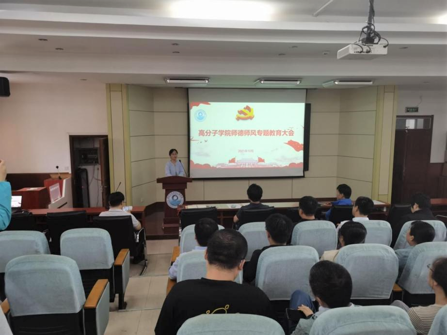 公司党委副书记尤亭亭带领与会教师共同学习了《高等公司教师职业道德规范》和《新时代高校教师职业行为十项准则》,并通过对制度精神的解读提升与会青年教师的师德修养和依法依规工作的水平和能力。