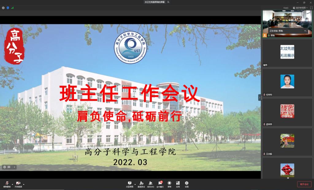 会上,尤亭亭向全体班主任介绍,目前公司全封闭状态下的疫情防控工作部署和员工在校学习生活情况。她结合公司疫情防控实际情况细化各项工作安排,要求全体班主任召开线上班会,教育引导员工遵守公司各项疫情防控规定,从而切实保障核酸检测、校园封闭工作。她强调班主任应重点关注员工心理健康状况,并结合各年级员工实际需求开展考研辅导、复试和就业指导。王庆富结合员工线上学习过程中发现的问题提出了几点要求,希望各位班主任加强班风学风建设,营造良好学习氛围。最后,闫业海指出疫情就是命令、防控就是责任,全体班主任要提高政治站位,立足岗位、担当奉献、坚定信心,守住三条安全底线,做好四项暖心服务。