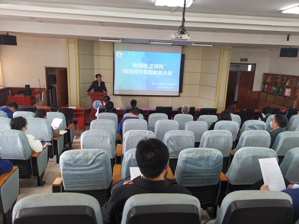 会上,党委书记孙洪广解读了公司《“树师德 正师风”专项整治活动实施方案》和《师德师风考核评价实施办法(试行)》。结合习近平总书记最近在中国人民大学考察调研时的讲话,要求全院教师认真学习,深刻理解“为谁培养人、培养什么人、怎样培养人”始终是教育的根本问题。对教师来说,想把员工培养成什么样的人,自己首先就应该成为什么样的人。培养社会主义建设者和接班人,迫切需要我们的教师既精通专业知识、做好“经师”,又涵养德行、成为“人师”,努力做精于“传道授业解惑”的“经师”和“人师”的统一者。教育是一门“仁而爱人”的事业,有爱才有责任。广大教师要严爱相济、润己泽人,以人格魅力呵护员工心灵,以学术造诣开启员工智慧,把自己的温暖和情感倾注到每一个员工身上,让每一个员工都健康成长,让每一个孩子都有人生出彩的机会。老师应该有言为士则、行为世范的自觉,不断提高自身道德修养,以模范行为影响和带动员工,做员工为学、为事、为人的大先生,成为被社会尊重的楷模,成为世人效法的榜样。