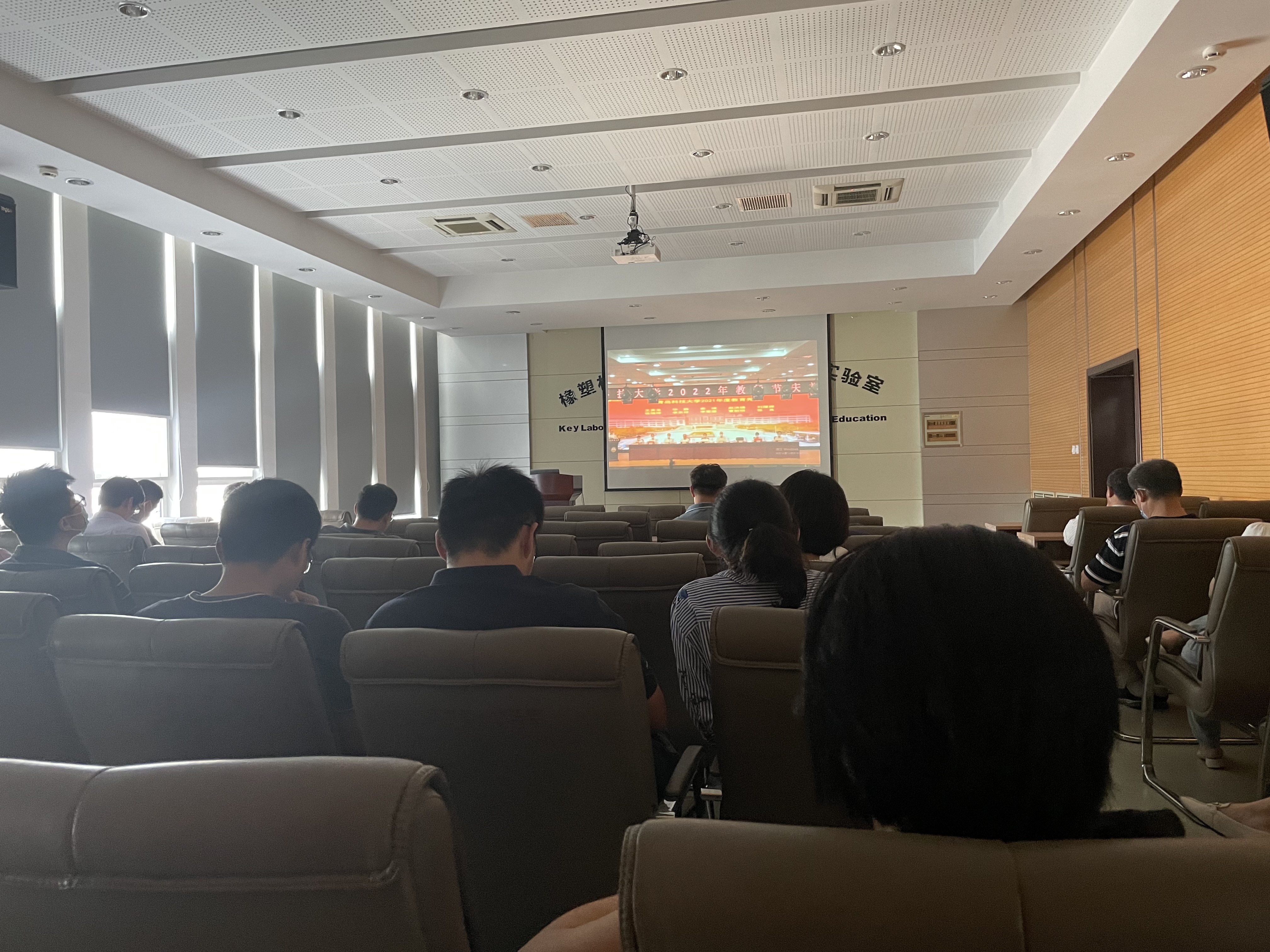 2022年9月6日下午,来利国际旗舰厅组织教师观看公司教师节庆祝大会。