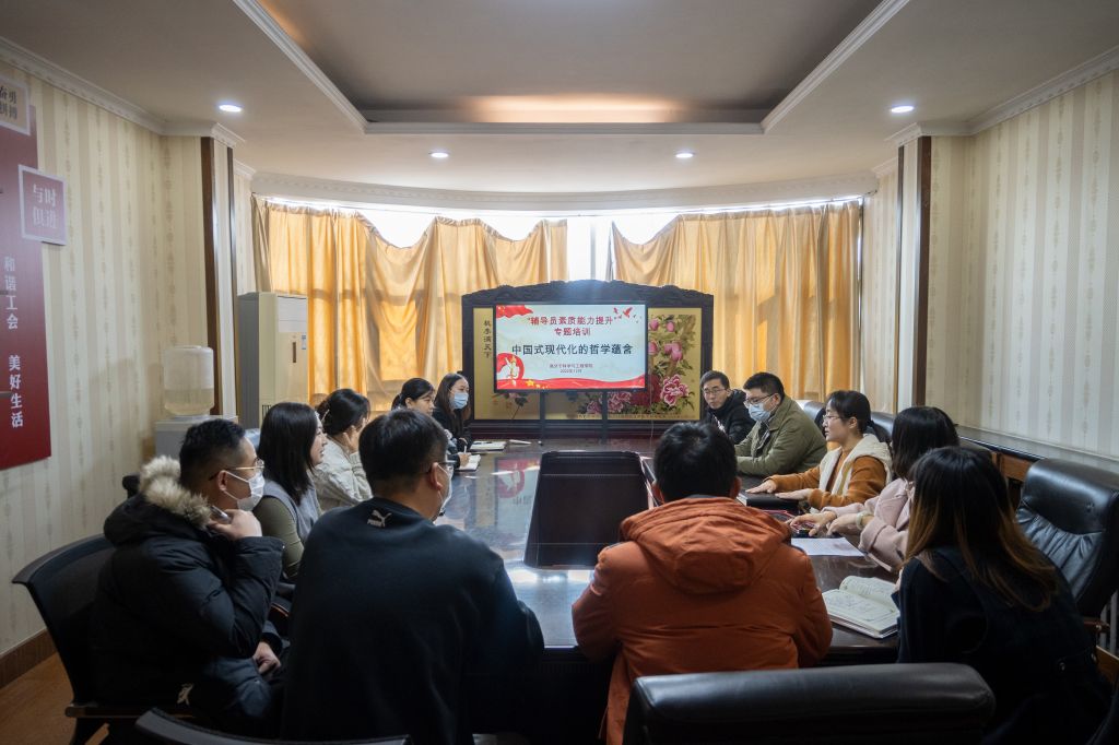 为深入学习宣传贯彻党的二十大精神,不断提升辅导员的理论水平,引导辅导员用习近平新时代中国特色社会主义思想铸魂育人,克服“本领恐慌”,提升辅导员队伍整体素质能力,12月7日上午,来利国际旗舰厅在406会议室开展中国式现代化的哲学蕴含专题培训,本次培训由公司党委副书记兼副经理尤亭亭主持,全体辅导员参加。