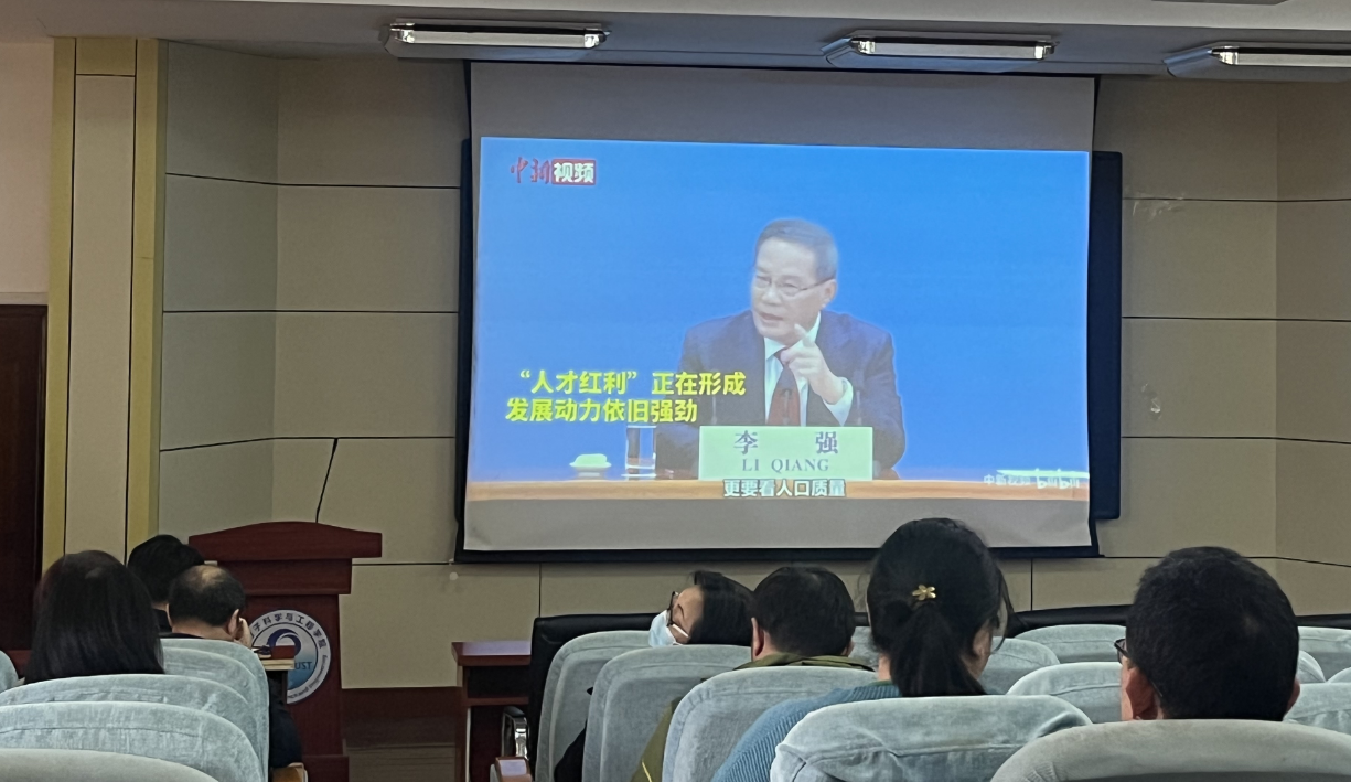 全体教职工集体观看了《国务院总理李强回答中外记者提问》相关视频。