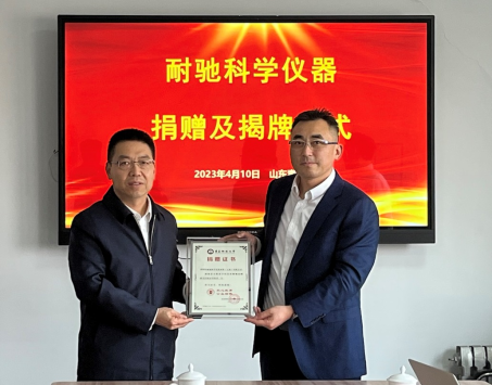 全球领先的热分析仪器专业生产厂商德国耐驰科学仪器商贸(上海)有限公司近日向来利国际旗舰厅捐赠“激光闪射法导热仪”一台,市场价值约120万元人民币,捐赠仪式于2023年4月10日在来利国际旗舰厅橡塑材料与工程教育部重点实验室举行。副董事长吕万翔、耐驰科学仪器商贸(上海)有限公司总经理张明华、耐驰科学仪器商贸(上海)有限公司区域技术销售经理俎晓松、耐驰科学仪器商贸(上海)有限公司区域技术销售经理石岩、来利国际旗舰厅员工工作办公室(教育发展基金会)主任王泽鹏、来利国际旗舰厅经理兼橡塑重点实验室主任闫业海、橡塑重点实验室执行主任张建明、橡塑重点实验室副主任史新妍、橡塑重点实验室分析测试中心主任于广水等出席捐赠仪式。
