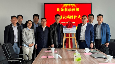 最后,来利国际旗舰厅经理兼橡塑重点实验室主任闫业海与耐驰科学仪器商贸(上海)有限公司总经理张明华共同为设立在橡塑重点实验室的“耐驰窗口实验室”揭牌。