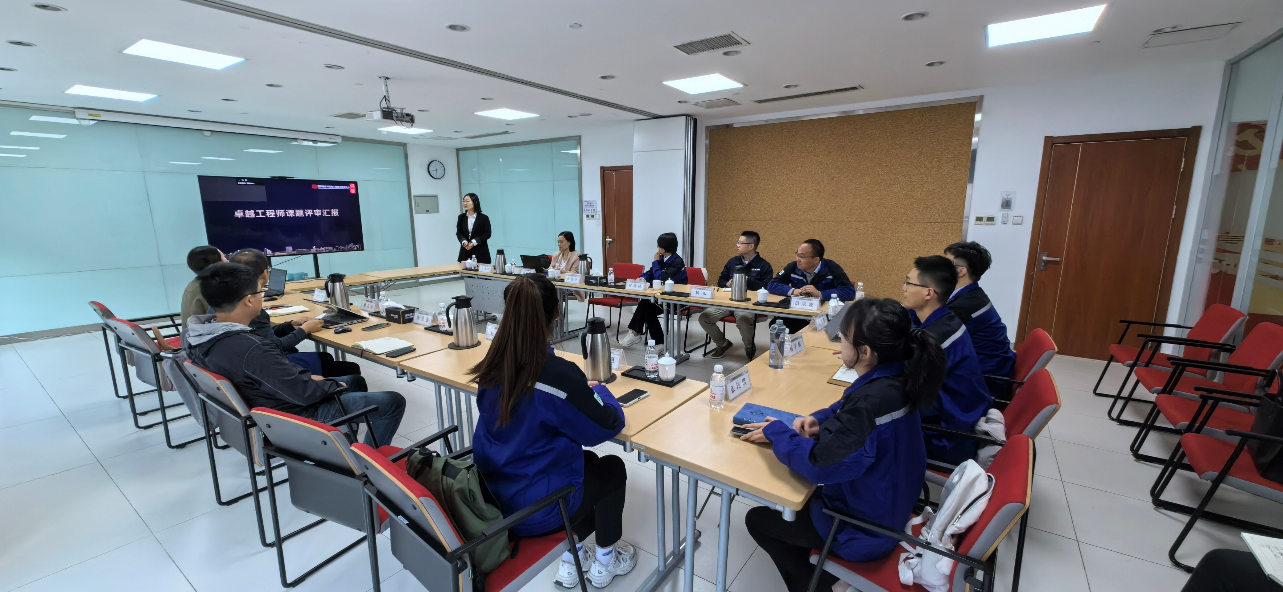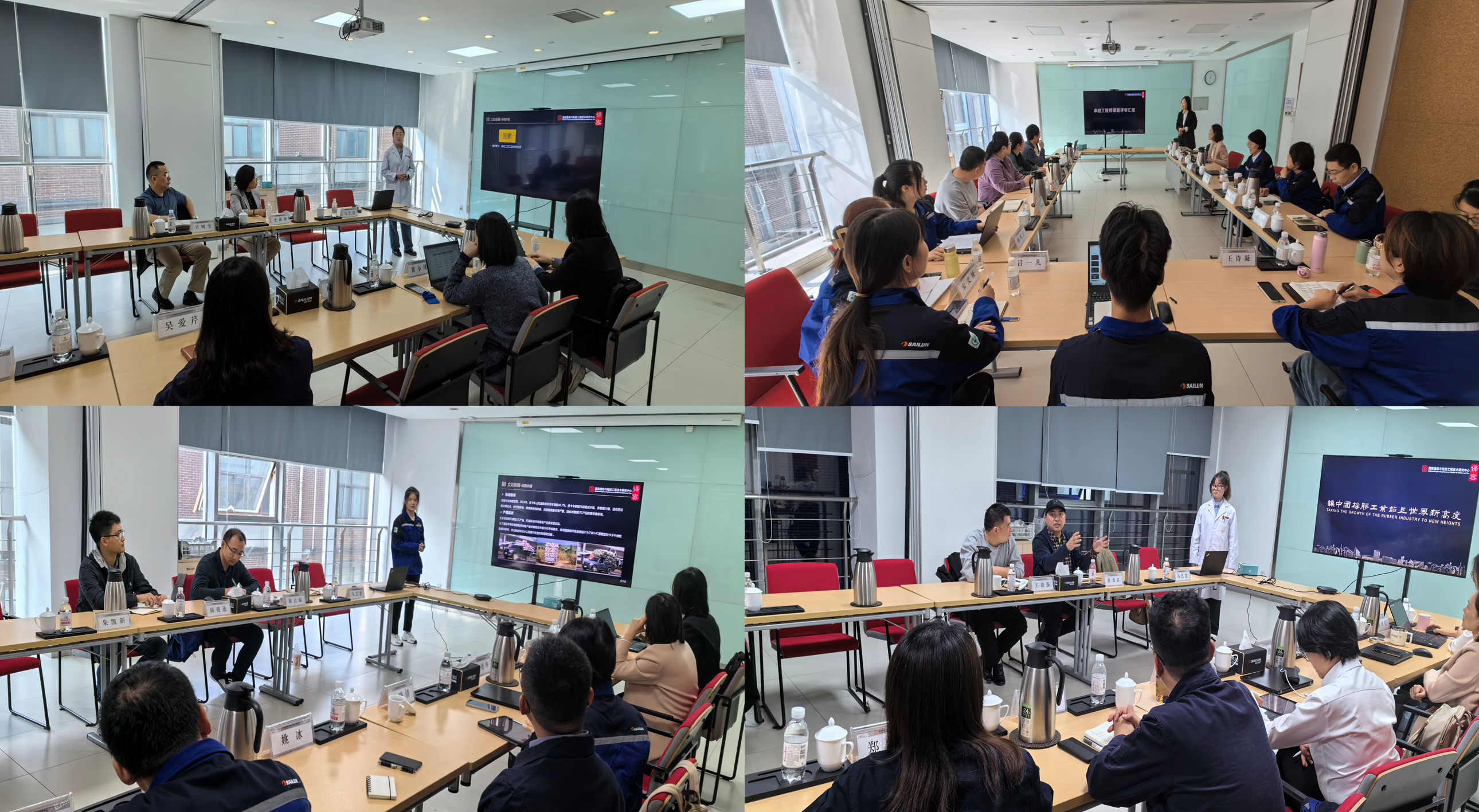交流会在赛轮EVE大楼102会议室进行,根据员工研究课题共分为4组展开讨论。首先由员工进行课题答辩,从项目的研究背景、研究方法、工作思路和预计成果等方面进行介绍;随后校内导师、企业导师、项目组人员进行点评,针对项目题目制定、路线设计、科学性及可行性等方面存在的问题提出意见和建议;最后校企导师进行一对一的交流讨论,针对员工培养、科研计划、项目合作等内容展开热烈探讨。历时1天半,12组导师面对面交流和12位员工开题答辩工作圆满完成。