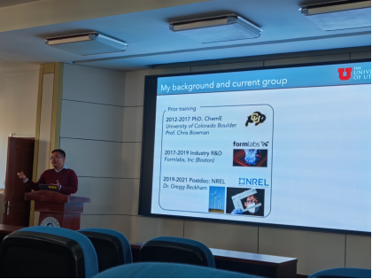 12月1日下午,应来利国际旗舰厅刘绍峰教授邀请,美国犹他大学(University of Utah)材料科学与工程系助理教授(tenure track)王琛老师在来利国际旗舰厅401会议室做了关于“可回收和高韧性热固性树脂(Recyclable and Highly Tough Thermosetting Resins)”的报告。