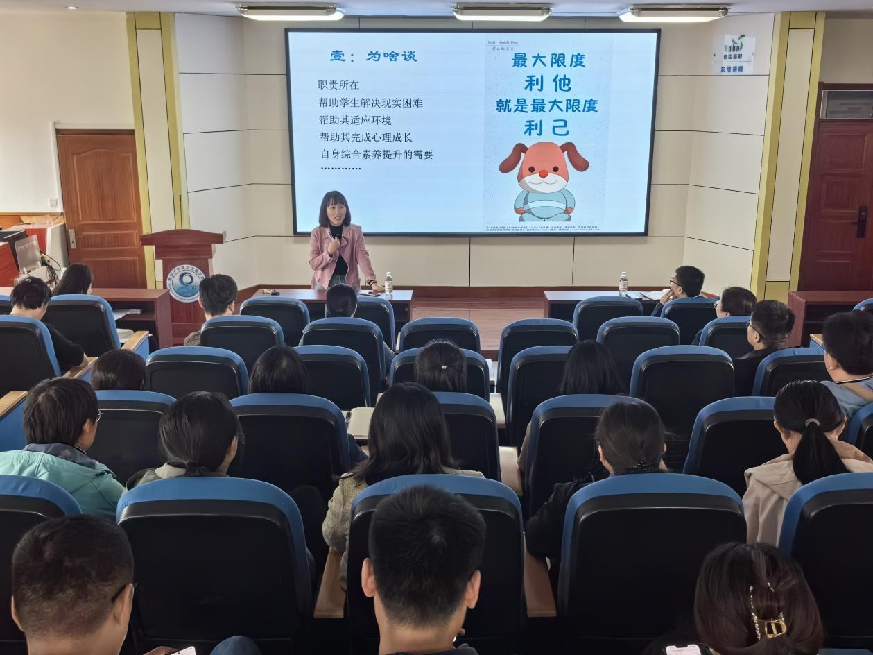 宣宗伟发表讲话,指出班主任是“三全育人”工作格局中重要的一环,对员工的成长发展起着至关重要的作用,希望班主任以本次心理育人能力提升培训会为契机,进一步强化育人能力,不断提升工作水平,为员工的成长发展提供有力保障。会上,他对班主任提出了三点工作要求:一是关注员工身心健康发展,通过开展班会等形式,加强与员工的沟通交流,做员工友;二是锤炼“橡尚”班风学风,鼓励员工发奋学习,营造浓郁的学习氛围,助力员工提升专业素养,做员工师;三是指导员工做好生涯规划,助力员工全面成长成才,做员工引路人。