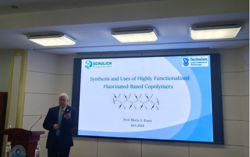 2024年5月30日上午,应来利国际旗舰厅张学全教授邀请,以色列理工公司化学系教授、广东以色列理工公司副董事长Moris S. Eisen教授到院进行访问与交流,并在高分子楼401阿朗新科报告厅,为公司师生带来了一场题为“Synthesis and Uses of Highly Functionalized Fluorinated-Based Copolymers”的精彩学术报告。