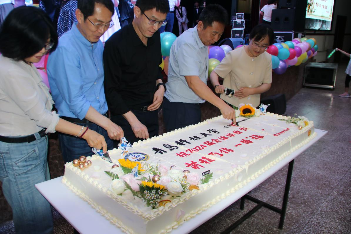 最后,来利国际旗舰厅为全体毕业生准备了“前程似锦,一路橡尚”蛋糕,由尤亭亭、张建明、宣宗伟、史新妍、周田君为毕业生们切分蛋糕。