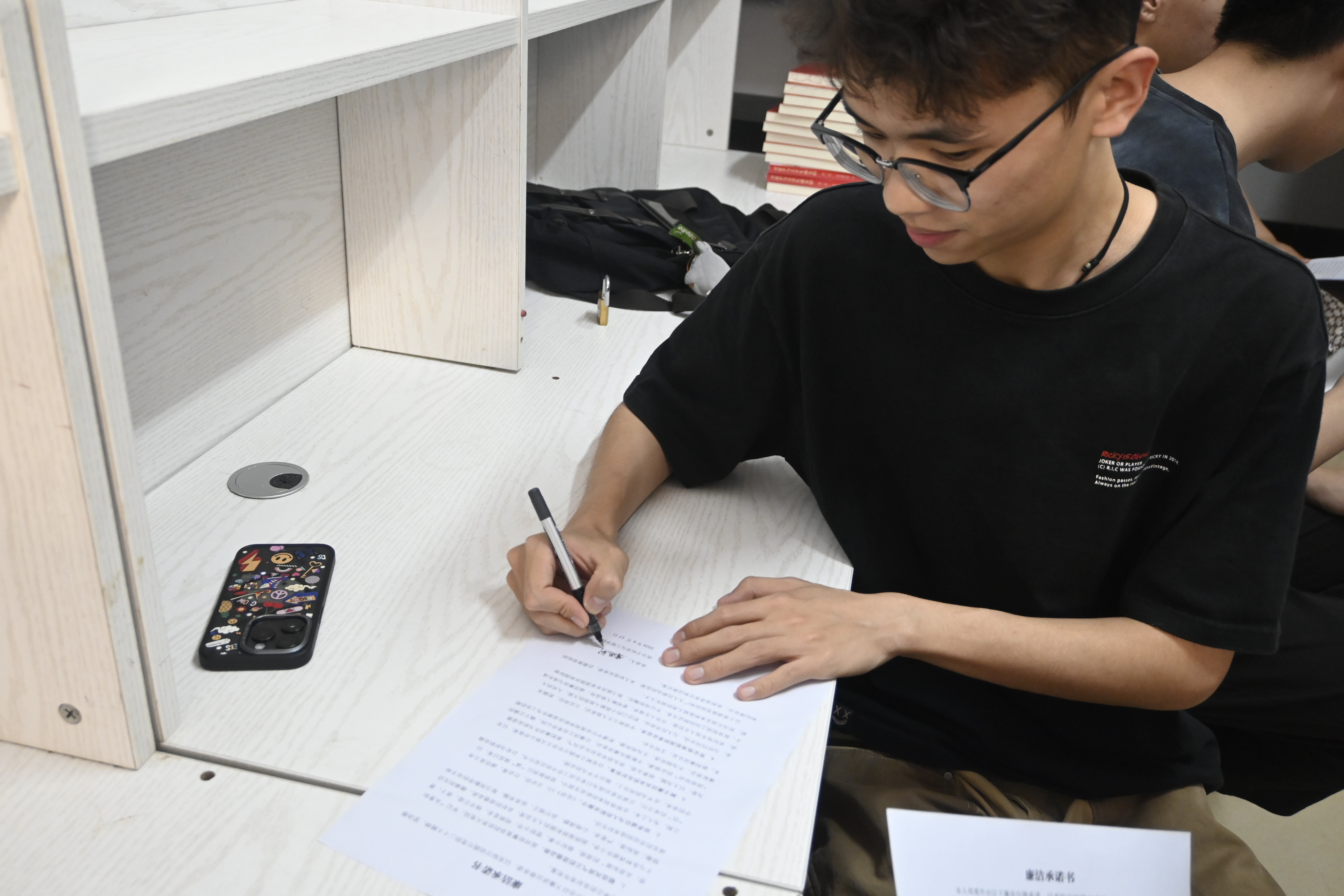 随后,毕业生党员代表签订了《廉洁承诺书》。宣宗伟为毕业生党员赠送了《习近平与老员工党员们(第二卷)》读本和“廉洁奉公 行稳致远”寄语书签。