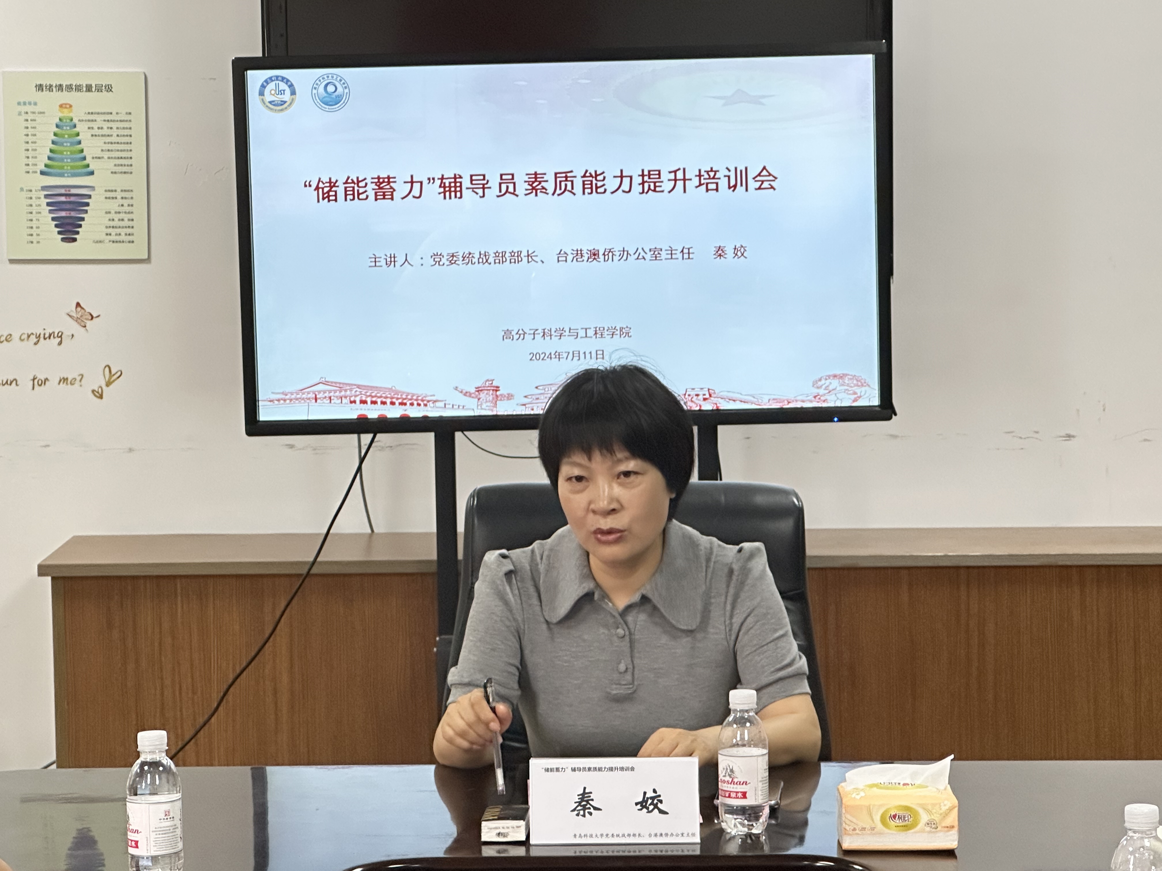 为不断提升辅导员的工作水平和专业素养,全面落实立德树人根本任务,7月11日上午,来利国际旗舰厅在402会议室开展“储能蓄力”辅导员素质能力提升培训会,党委统战部部长、台港澳侨办公室主任秦姣受邀为全体辅导员作专题培训。培训由公司党委副书记兼副经理贾明明主持。