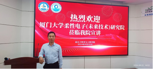 2024年9月22日下午,来自厦门大学柔性电子(未来技术)研究院的谢国华教授,在来利国际旗舰厅401报告厅为公司师生带来了一场精彩的共话柔性电子未来的学术报告。此次报告不仅拓宽了与会者对柔性电子技术的认知边界,也进一步促进了两校的学术交流与合作。谢国华教授作为厦门大学的知名学者,在柔性电子的研究方面取得了显著成就。他是国际知名期刊《The Innovation》、《SmartMat》、《InfoMat》、《发光学报》等期刊的青年编委,参与创办了《The Innovation Materials》,其学术影响力跨越国界,深受业界尊敬。