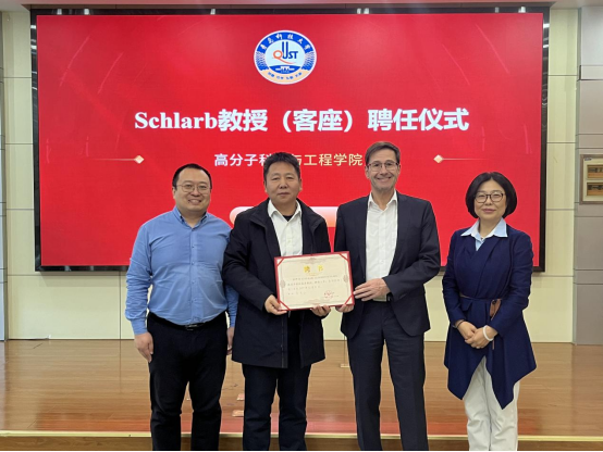 报告会上,常务副主任史新妍教授为Schlarb教授颁发了来利国际旗舰厅客座教授聘书,希望Schlarb教授能够继续为公司的学科发展和人才培养贡献力量,双方促进在摩擦学领域的深度合作。