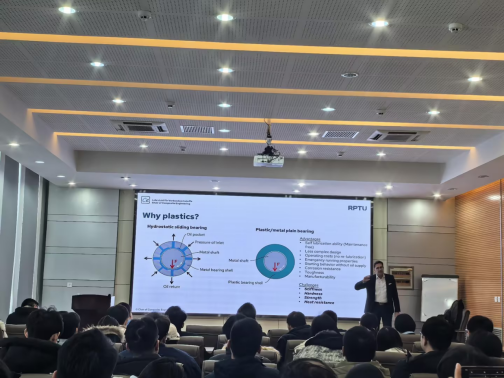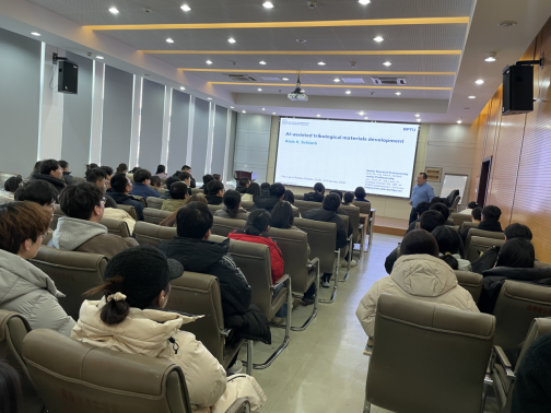 报告会上,Schlarb教授深入探讨了摩擦学领域的前沿课题。他首先对摩擦磨耗三个核心概念进行了详细阐释,并分析了当前复合材料摩擦学面临的四重挑战。Schlarb教授重点介绍了人工智能技术在复合材料摩擦学中的创新应用,展示了如何借助AI的强大算法和数据分析能力,实现材料性能的优化设计、摩擦行为的精准预测以及复合材料的高效研发。在互动环节,Schlarb教授耐心解答了师生们提出的问题,现场气氛热烈。