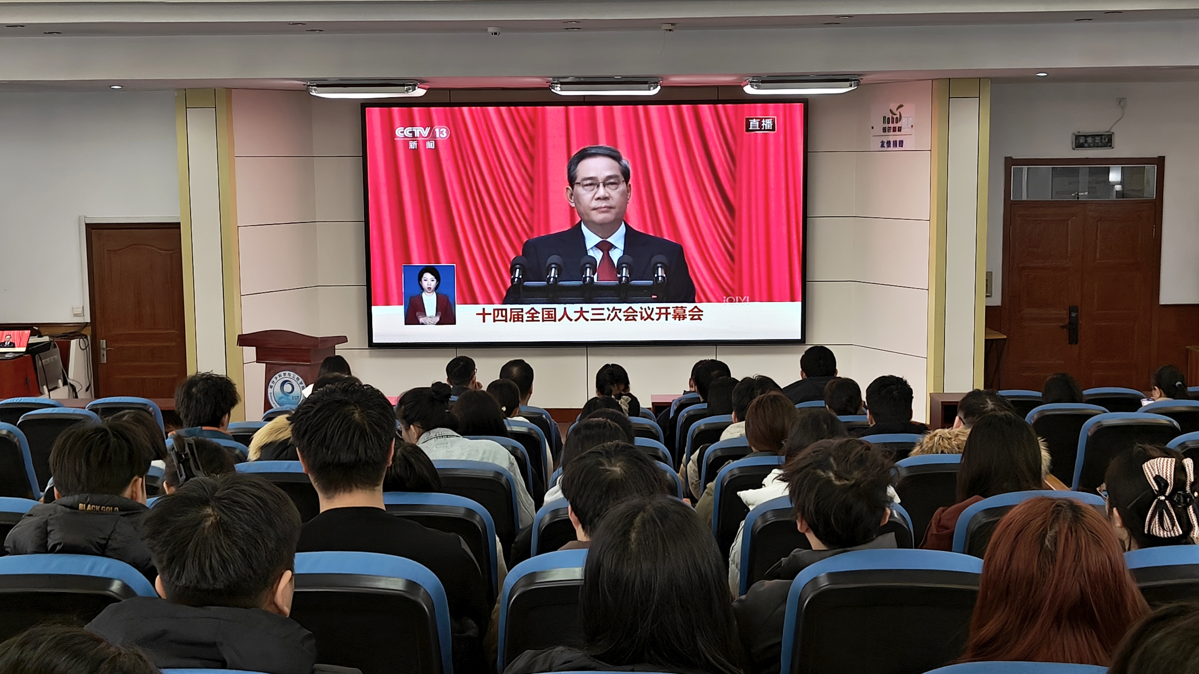 观看直播过程中,师生们全神贯注,认真学习了会议期间重要的讲话以及国家发展的方向和重点。观看结束后,大家围绕会议热点话题,结合工作、学习实际,纷纷撰写、发表学习感想。师生们一致认为,要深入学习宣传贯彻两会精神,将个人的发展与国家的发展紧密结合起来,为实现中华民族伟大复兴的中国梦贡献自己的力量。