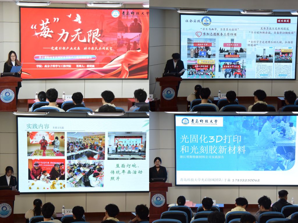 交流会上,来自不同年级的12支寒假社会实践团队代表或个人依次上台,分别聚焦思想宣讲、志愿服务、非遗寻访、云支教、社区实践、读书接力等实践类型,以生动的语言和精彩的图片,对他们在寒假中的收获与成长进行了汇报。