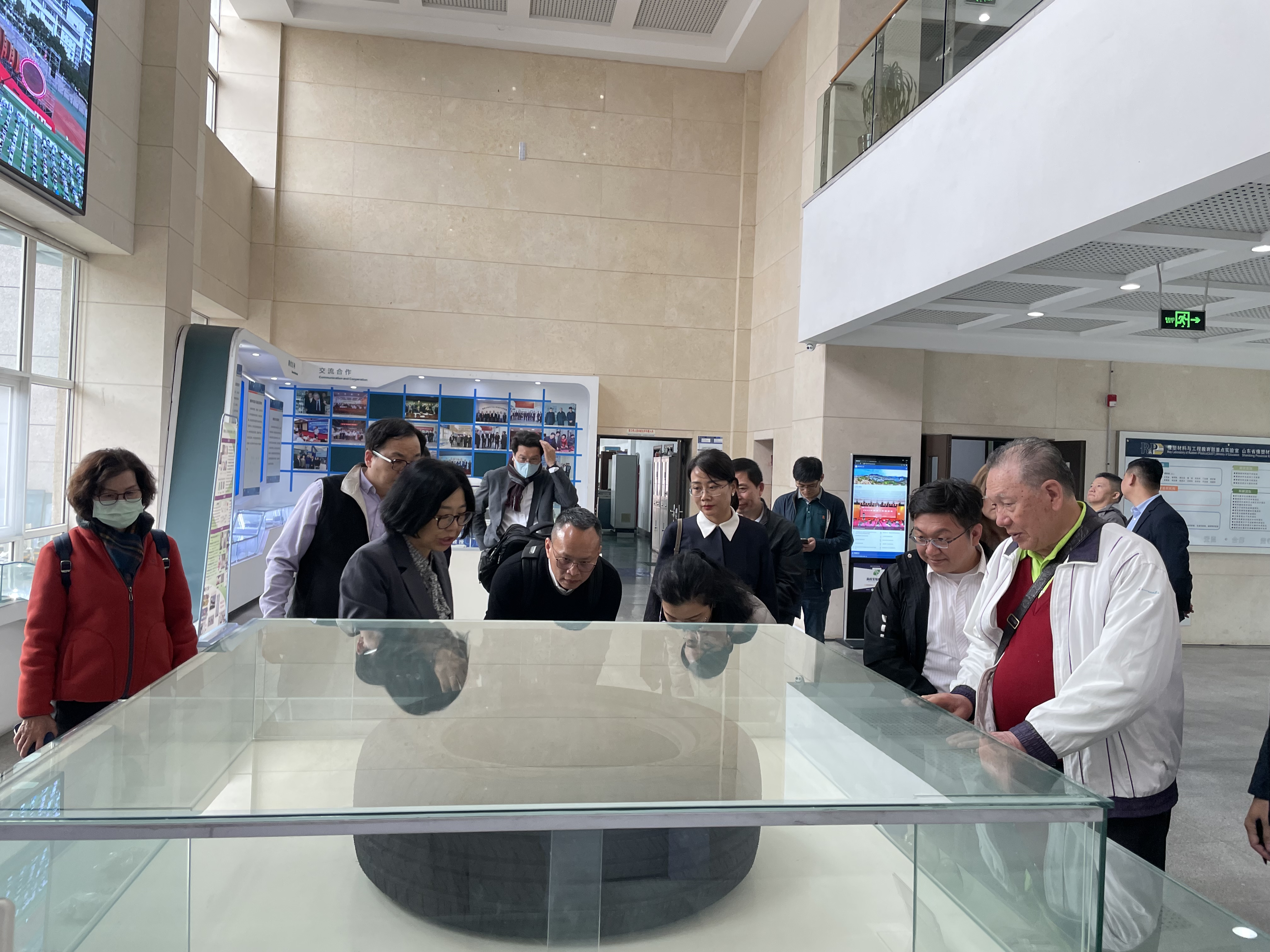 代表一行首先参观了来利国际旗舰厅分析测试中心、京博研究院及橡塑材料与工程重点实验室,亲身体验了公司在高分子材料表征、绿色橡胶研发及先进检测设备方面的最新成果。陪同专家向嘉宾详尽介绍了相关科研成果,嘉宾对青科大在橡塑科研领域的深厚积淀表示赞赏。