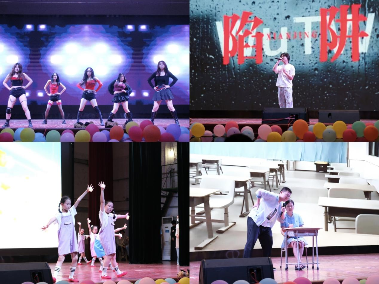 第一篇章——“高”别山海·青春启航。青春的热血与理想的光芒,会照亮每一段航程。姜一帆、孙飞扬同学带来的合唱《陷阱》以清澈嗓音唤醒青春记忆,那是梦想萌芽的纯粹之声;教职工子女表演的舞蹈《青春快出发》如同一道明媚阳光,孩子们纯真的笑容与欢快的舞步,带大家重回初入校园的懵懂时光;姜欣悦等同学演绎的小品《当考试还剩十五分钟》则以幽默笔触还原考场百态,翻书声、落笔声与慌乱的低语交织成独属于青春的共鸣乐章,引得现场笑声与掌声此起彼伏。