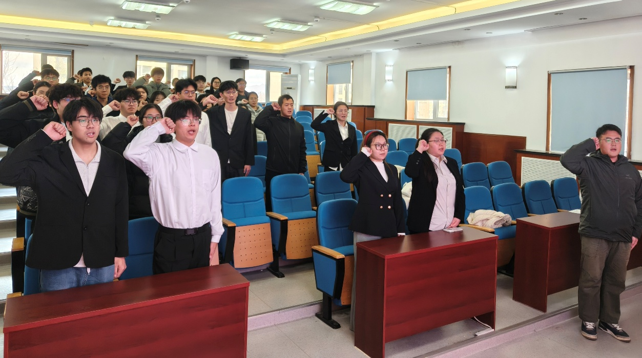 宣讲结束后,本学期新发展员工党员开展入党宣誓仪式,新发展党员们高举右拳,以铿锵有力的声音宣读入党誓词,庄严的誓言在会议室中回荡,这既是对党的郑重承诺,也是对未来践行初心使命的坚定表态。