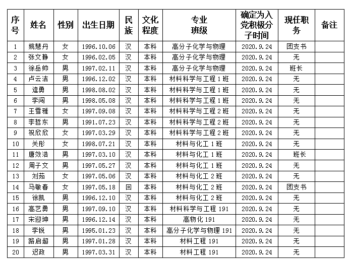 经各班级团员推优,研究生党支部无记名投票推荐,拟确定姚慧丹等同志为入党积极分子,现公示如下,如有问题,可到来利国际旗舰厅团委反映。