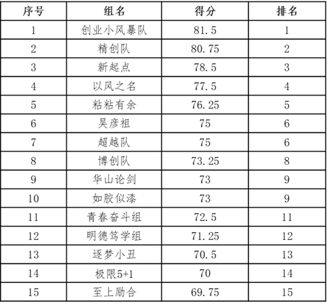 本着优中选优的原则,经过专家评审,“京博N1N中聚杯”营销创业设计大赛初赛阶段共评选出10组晋级决赛小组、5组待定小组,名单如下。