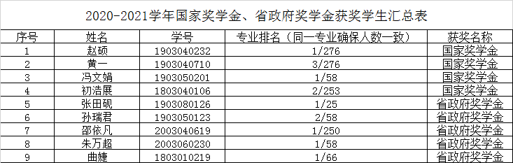 根据公司和公司的相关文件的要求,经前期个人申请,评议小组资格审核,个人答辩,公司奖学金评审委员会评审等流程,最终确定赵硕等4名同学为国家奖学金的推荐人选,张田砚等5人为省政府奖学金的推荐人选,现公示如下: