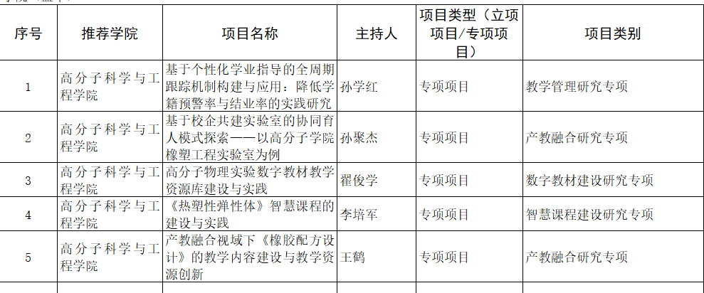 2. 教学改革研究专项项目5项:
