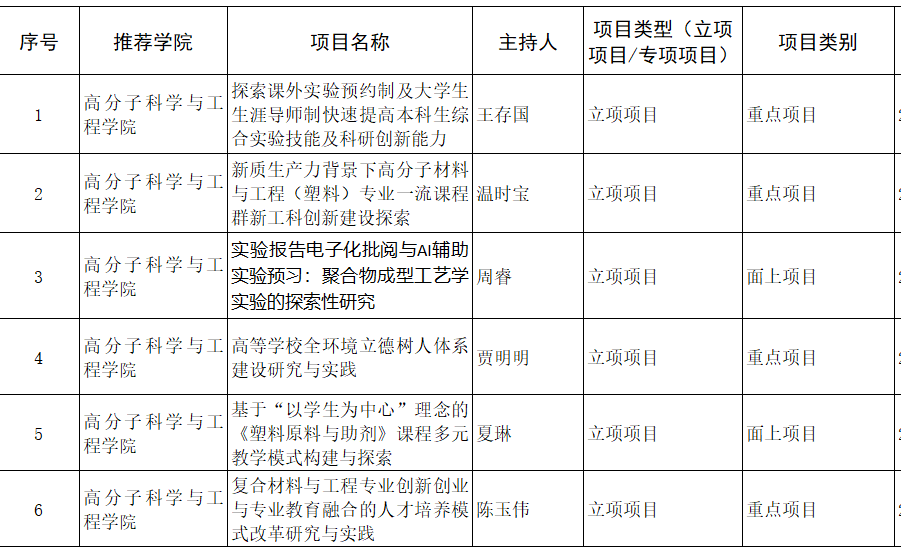 1. 教学改革研究立项项目6项: