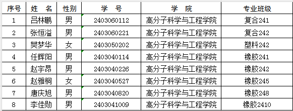 根据公司《关于评审2024年度青岛银行奖助学金的通知》的相关要求,结合高分子科学与工程公司实际,经员工自主申请、公司审核,拟推荐魏昊宇等16人获得2024年度青岛银行奖学金,吕林鹏等8人获得2024年度青岛银行助学金。名单如下:
